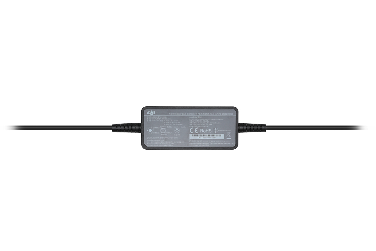 Автомобильное зарядное устройство предназначено для зарядки интеллектуальных аккумуляторных батарей и пульта дистанционного управления квадрокоптера Inspire 2 от автомобильной розетки прикуривателя.